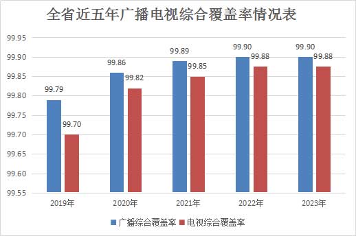全省廣播綜合人口覆蓋率99.90%;全省電視綜合人口覆蓋率99.88%,均與上年持平。